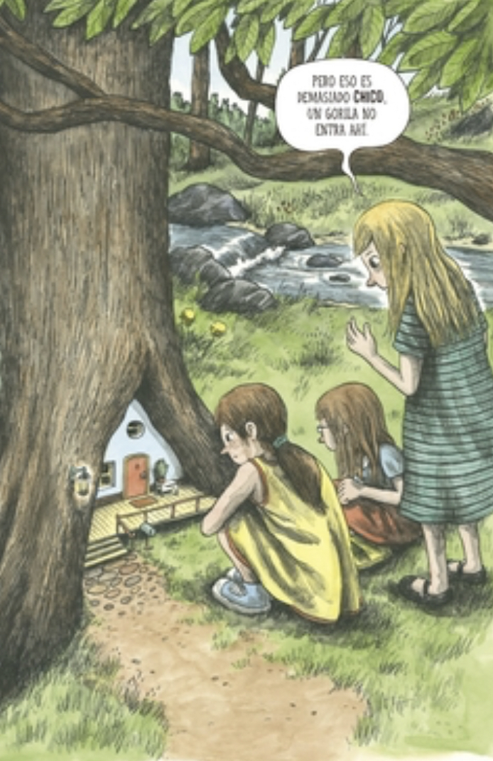 La isla está cubierta de una espesa jungla, y las niñas, sanas y salvas, se adentran sin pensarlo en la salvajura de la isla. Un mini gorila, un dragón humeante y flores parlantes, no son nada en comparación a las tres salvajes que sobreviven entusiastas en una isla que parece no tener fin. Liniers enternece con esta historia breve, que se siente cercana e íntima desde la primera página. Las niñas salvajes, las flores salvajes, y el territorio infinito de su imaginación, al cual pertenecen, se elevan como una verdad sagrada de la infancia, como una reliquia que de a poco vemos extinguirse. ¿De qué es capaz unx niñx en campo abierto?